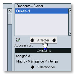 Mais j’ai mieux ! Retournez dans la gestion des Raccourcis. Dans la liste, repérez le dossier Macros, ouvrez-le et sélectionnez celle que nous venons de créer. Et ? Et bé, affectez-lui un Raccourci pardi ;o) Vous lancerez votre Macro via ce Raccourci ! Redoutable ‘est-ce pas ? |