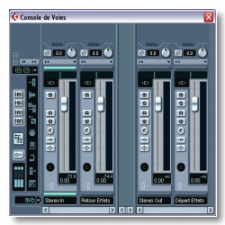 Cubase fait alors deux choses, il ajoute une piste dans le Projet et insère la tranche correspondant à cette piste dans la table de Mixage. Cette tranche peut maintenant être utilisée sur les départ d’effets de toutes les pistes Audio, VSTi ou Groupe. Suffit de s’y habituer ,o) |