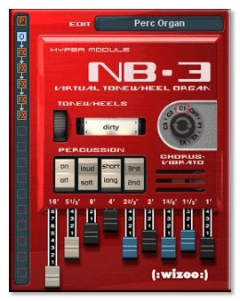 Il s’agit donc d’un orgue à roues phoniques avec ses 9 tirettes, sa cabine Leslie, son effet Chorus etc. Le réglage le plus intéressant est celui nommé « Tonewheel ». Il permet de modifier le comportement de « l’électronique » de l’orgue, son usure, la forme d’onde générée etc. Ainsi, Wizoo promet que le NB-3 est capable non seulement de reproduire les sonorités de différents modèles d’orgue, mais aussi de produire des sons qui n’existeraient pas sans lui.