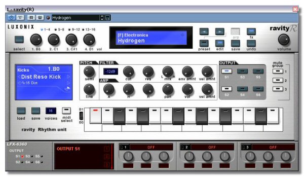 Sortis le 25 avril 2004, les deux instruments virtuels de Luxonix font néanmoins preuve d'une maturité assez exceptionnelle. Ces deux produits sont des exemples de stabilité, d'optimisation de la consommation processeur, et, surtout, sonnent terriblement bien ! Tout a été pensé dans les moindres détails, et les mises à jour s'enchaînent à un rythme effréné, corrigeant çà et là quelques bugs, mais surtout améliorant les possibilités des appareils. Je vous présente donc en détail Ravity(R) et Ravity (S), respectivement boîte à rythme et synthétiseur de la marque. Avec, en cadeau, le LFX-1310, multi effet directement issu de ces deux VST-i.